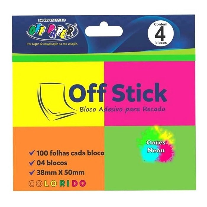 Bloco Adesivo Para Recado Off Stick 38x50mm 4 Cores