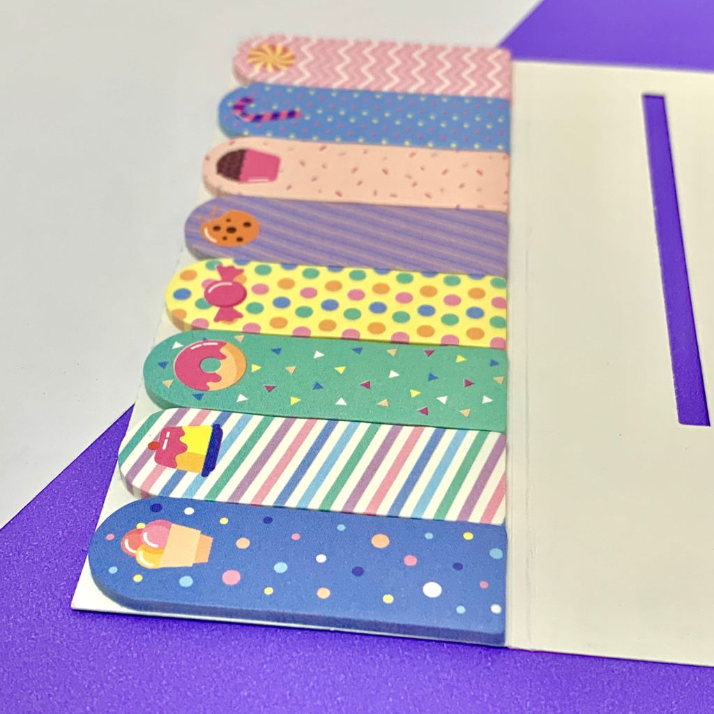 Este kit de Marcador De Página Candy é uma maneira simples, mas eficaz, de manter suas anotações, livros ou cadernos organizados e de fácil acesso.